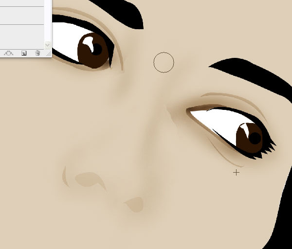 Still on the "Head" layer, select the Burn Tool (0). Then darken the areas around her nose to give it form and depth. Use the picture as a reference.